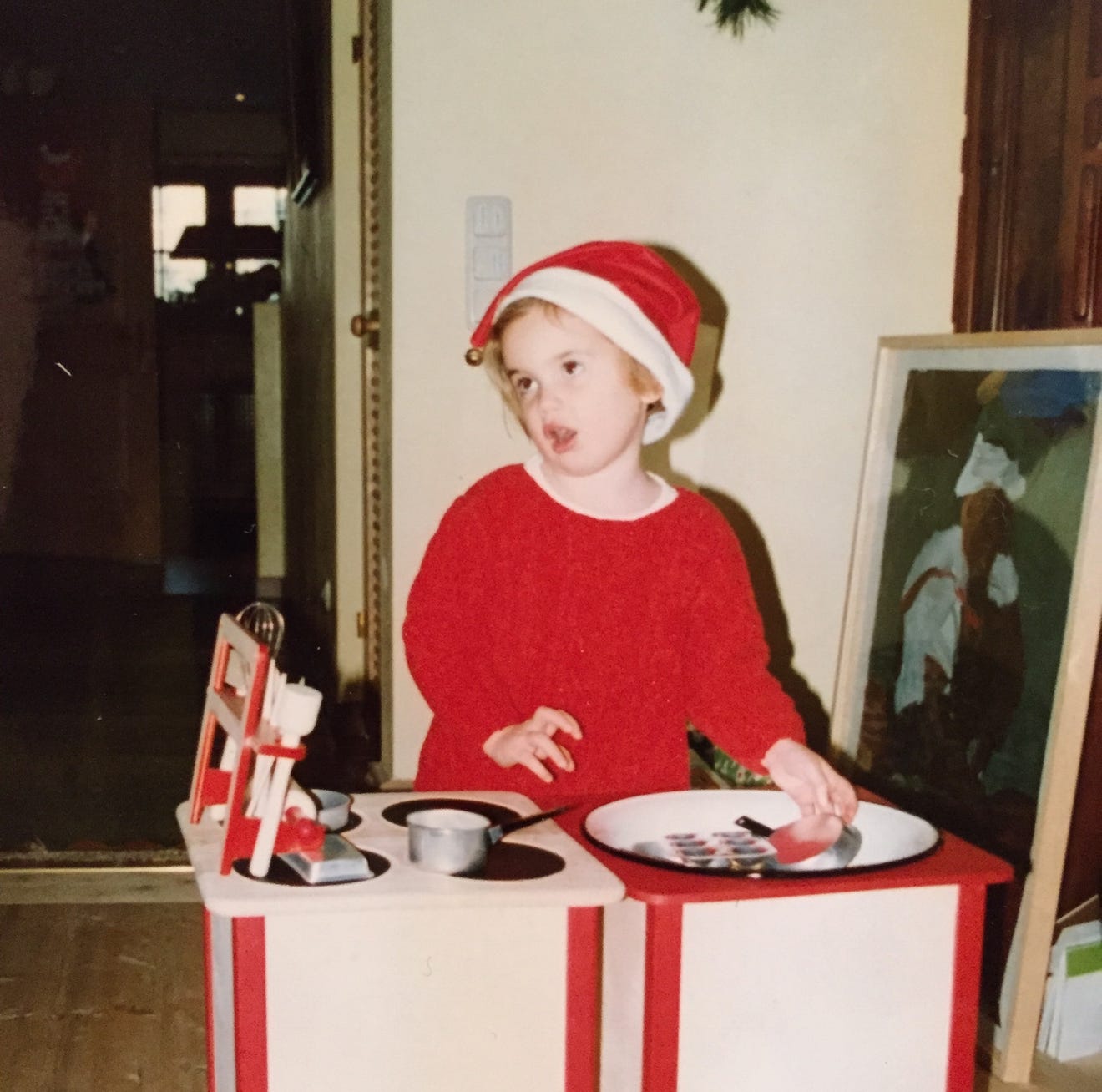 This soup is rich without being heavy! And the crunchy-soggy-cheesy cubes give the broth a bit of punch! Great soup! And, love that totally " I so know what I am doing here at my toy kitchen" look. Already had the soup thing down as a kid!