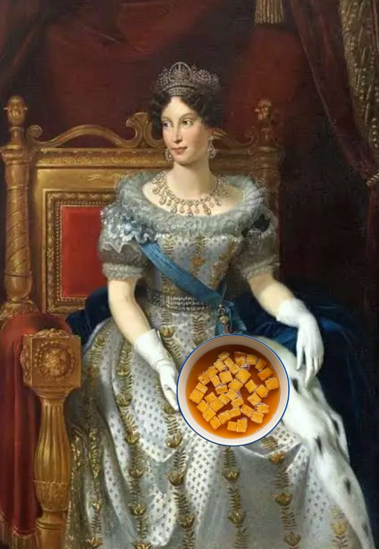 Zuppa Imperiale combines some of the best elements of both Italian and Austrian cuisine, marrying the concepts of clear broth and semolina dumplings (Austria) with a boatload of parmesan (Italy). Empress Marie Louise, wife of Napoleon, is said to be the originator - once she became Duchess of Parma after his fall and moved to Italy, she brought along Austrian culinary traditions.